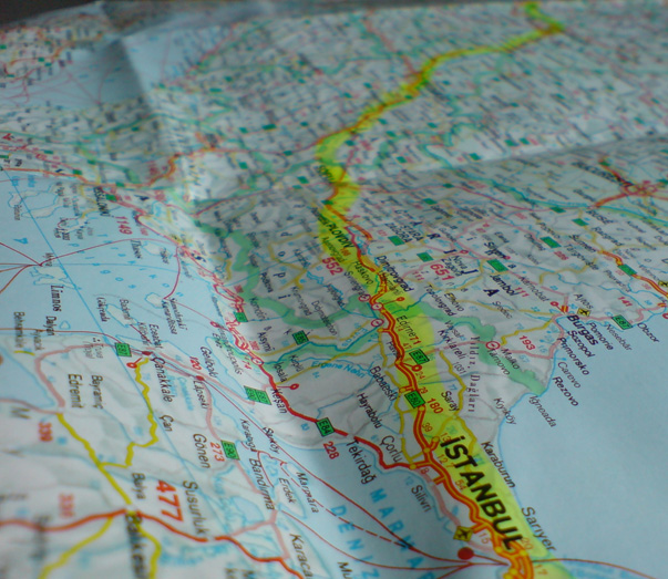 Ja Istanbul dus. Het ligt daar zo mooi op de kaart. Zo n raar puntje van europa, die vernauwing. De doorgang naar daar waar het wel heel ver weg van huis begint te worden.