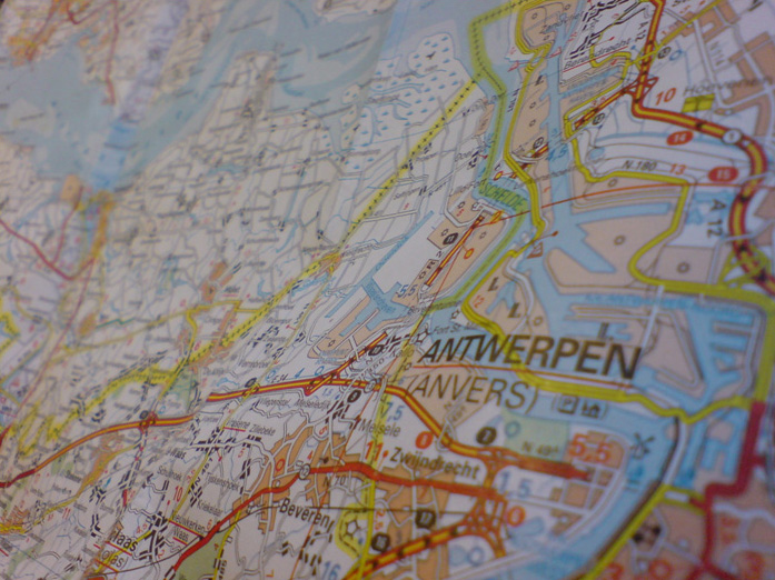 Die pont. Ik wordt steeds zenuwachtiger als ik eraan denk. De haast de onrust, de kans op mislukkig. Het missen. Het op de kant je droom weg zien varen. Huilen... Daar tegenover staat die ene andere optie: Via rotterdam, over antwerpen en brussel. Het is korter.